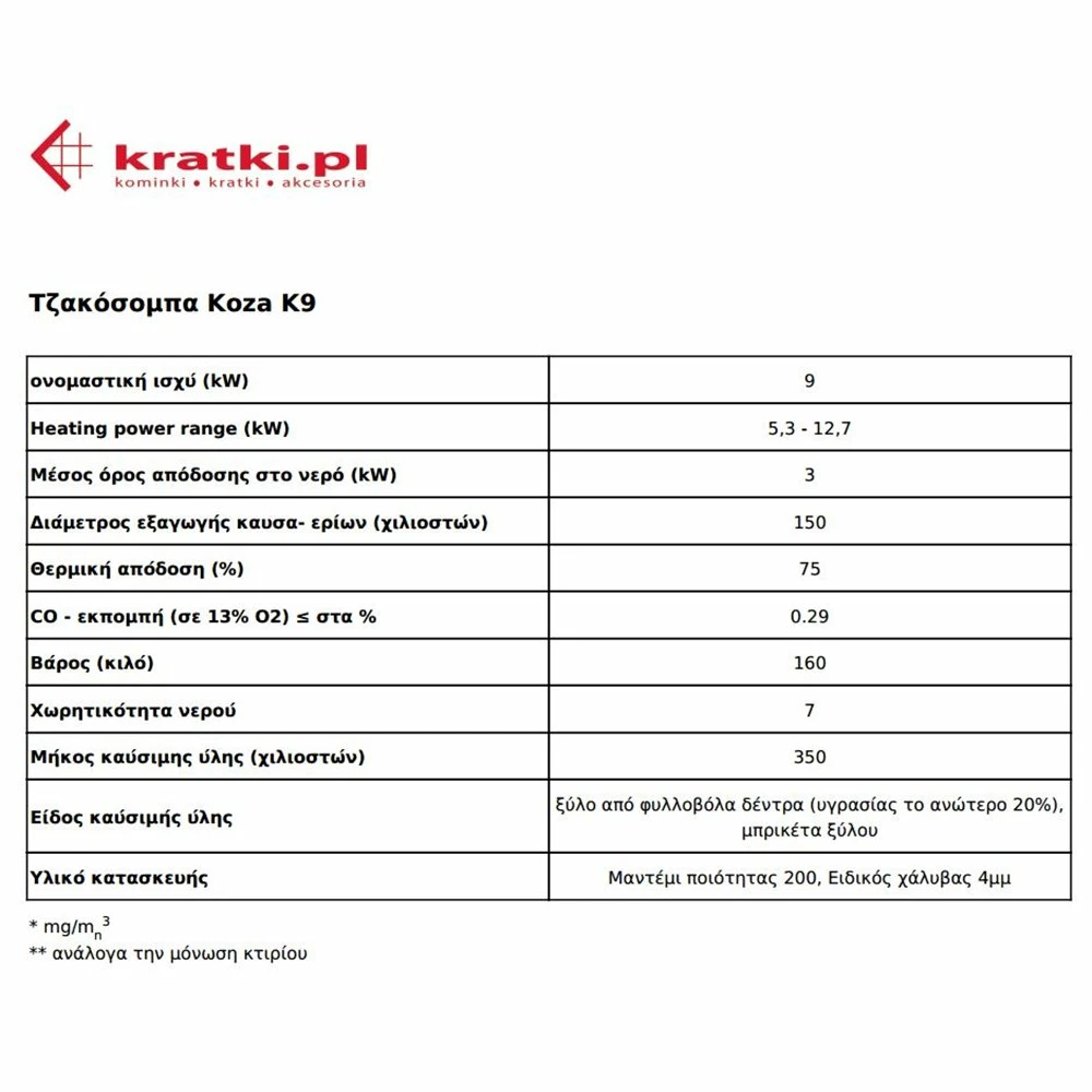 Ενεργειακή σόμπα μαντεμένια KRATKI KOZA K9 TURBOFAN 10KW / 50-70m2