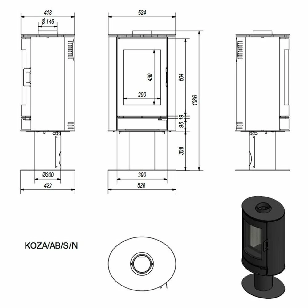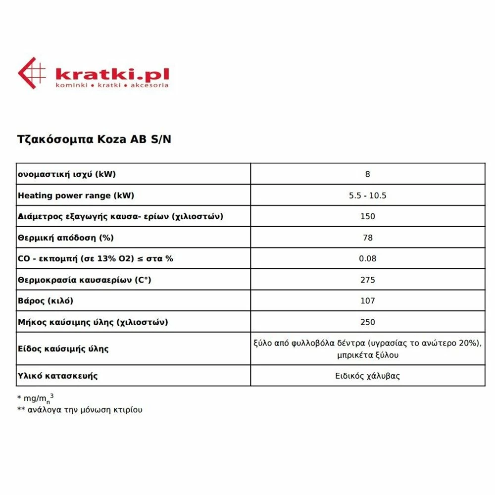 Ενεργειακή σόμπα ξύλου KRATKI KOZA AB/S/N/DR 8KW / 50-70m2