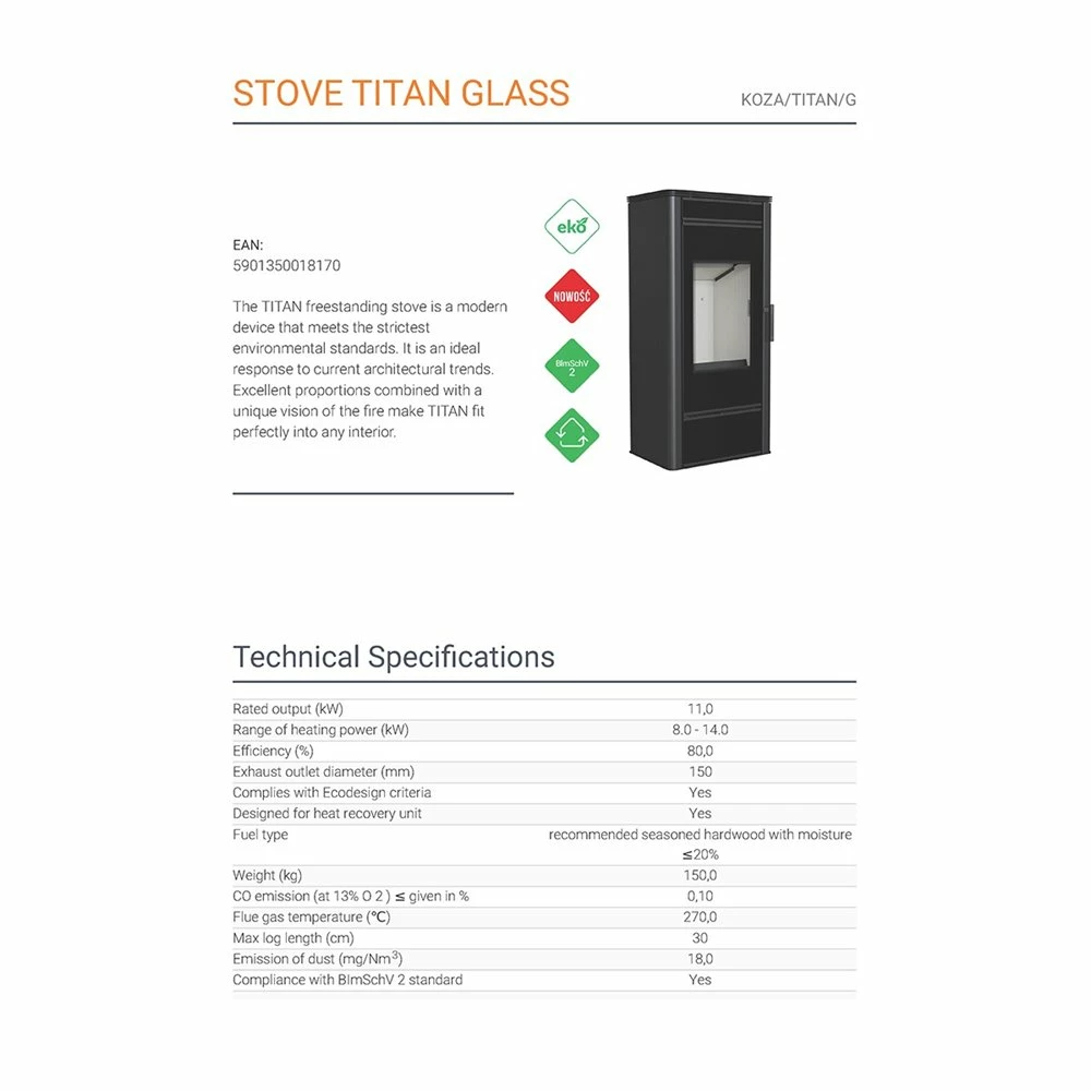 Ενεργειακή σόμπα ξύλου KRATKI KOZA/TITAN/G (95-120M2)