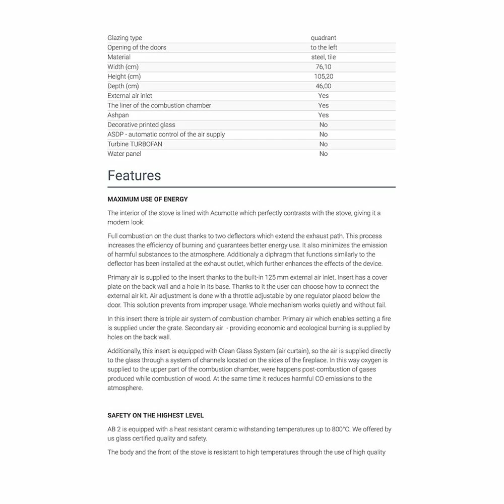 Ενεργειακή σόμπα ξύλου με λευκή κεραμική επένδυση KRATKI KOZA/AB/S/2/KAFEL/CZARNA 10KW / 70-90m2