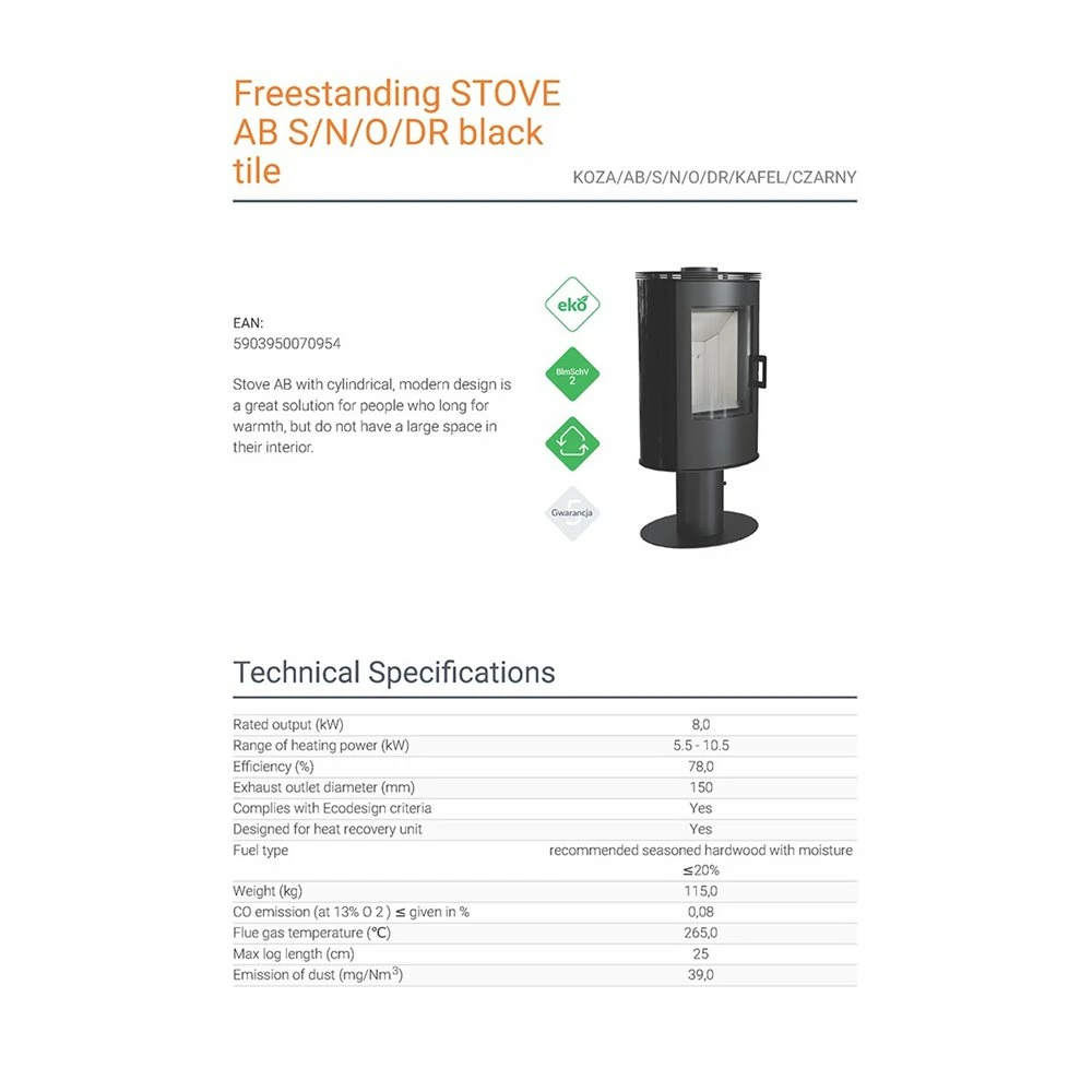 Ενεργειακή σόμπα ξύλου περιστρεφόμενη κεραμική KRATKI KOZA/AB/S/N/O/DR/KAFEL/CZARNY 8KW / 50-70m2