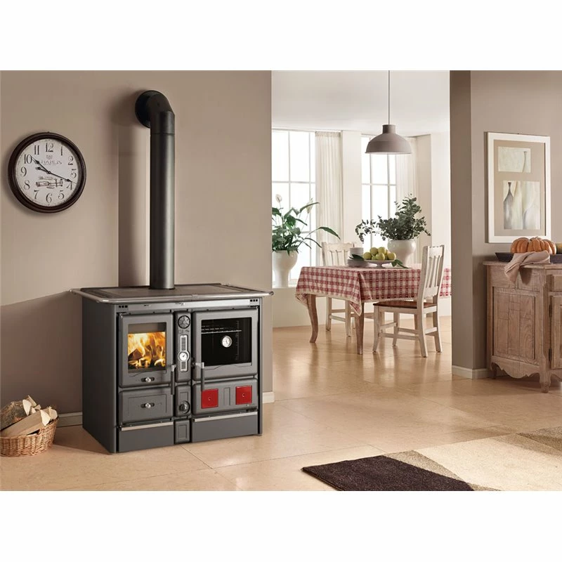 Η TermoRosa XXL είναι μια ενεργειακή κουζίνα ξύλου – καλοριφέρ (στόφα-λέβητας), με επενδύσεις από χάλυβα και λεπτομέρειες από Ιταλικά κεραμικά (φαγεντιανά). Παρά την πιο κλασσική της εμφάνιση, μέσα της κρύβεται μια υπερσύγχρονη μηχανή παραγωγής θερμότητας που αποδίδει 18,4kW θερμικής ισχύος, που μπορούν να θερμάνουν χώρους ως και 527 κυβικά μέτρα. Έχει εμαγιέ φούρνο χωρητικότητας 55 λίτρων, με ενσωματωμένο θερμόμετρο στην πόρτα του και ένα μάτι μαγειρέματος στο πάνω μέρος της. Οι πόρτες, όλη η πρόσοψη, καθώς και το πλαίσιο, η πλάκα και οι δακτύλιοι (μάτι) είναι κατασκευασμένα από κορυφαίας ποιότητας κράμα χυτοσιδήρου, εξασφαλίζοντας πολύ μεγάλη αντοχή στον χρόνο. Έχει δοχείο στο κάτω μέρος του χώρου καύσης, όπου συλλέγεται η τέφρα κάνοντας πιο εύκολη την απομάκρυνσή της. Ο πρωτογενής και ο δευτερογενής αέρας καύσης είναι ρυθμιζόμενοι από τον χρήστη, ενώ ο τριτογενής αέρας είναι προρυθμισμένος. Μπορεί να συνδεθεί στο δίκτυο των καλοριφέρ με ανοιχτό δοχείο διαστολής, ή με το σύστημα “D.S.A.”*, με κλειστό δοχείο διαστολής.