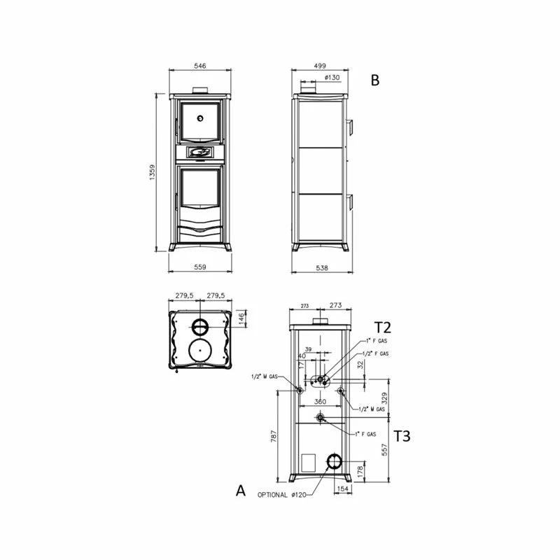 Η TermoRossella Plus Forno D.S.A. 4.0, είναι μια ενεργειακή ξυλόσομπα καλοριφέρ, με έναν πολύ χρήσιμο φούρνο στο πάνω μέρος της. Η ισχύς της φθάνει στα 11,1kW που επαρκούν για την θέρμανση χώρων μέχρι και 320 κυβικά μέτρα. Έχει δοχείο στο κάτω μέρος της όπου συλλέγεται η τέφρα, κάνοντας έτσι πιο εύκολη την απομάκρυνσή της. Το κρύσταλλο της μαντεμένιας πόρτας της είναι πυρίμαχο κεραμικό και αντοχής 750°C. Το πορτάκι του φούρνου είναι μαντεμένιο και έχει θερμόμετρο στο τζάμι του. Η εστία της είναι από ειδικό χάλυβα λεβητοποιΐας. Εξωτερικά είναι επενδεδυμένη είτε με αυθεντικά Ιταλικά χειροποίητα κεραμικά (φαγεντιανά) σε μπορντώ ή μπεζ (της περγαμηνής) χρώμα, είτε με φυσικό πέτρωμα στεατίτη (σαπωνόλιθο) που απορροφά την θερμότητα και την διαχέει σταδιακά και ομοιόμορφα στον χώρο. Μπορεί να τοποθετηθεί σε κύκλωμα καλοριφέρ με κλειστού τύπου δοχείο διαστολής, χάρη στο ειδικό σύστημα DSA που προστατεύει την εγκατάσταση από την υπερθέρμανση, ή αν θέλουμε και με ανοιχτό δοχείο διαστολής. Εξαιρετικά σημαντικό πλεονέκτημα της TermoRossella Plus Forno D.S.A. 4.0 είναι ο βαθμός απόδοσής της 88,0% !!!